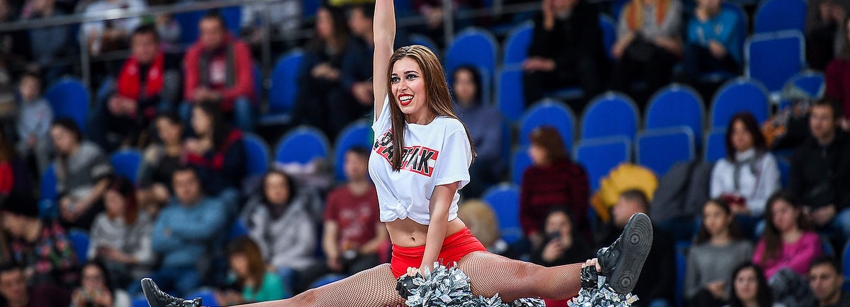 Рэпер ST открыл матч исполнением своих песен, заряжающих на победу красно-белых игроков, а в создании нужной атмосферы ему помогла наша группа поддержки. Матч выдался очень напряженным и волнительным, игроки обеих команд сражались за каждый мяч и за каждую секунду, поэтому было много тайм-аутов, во время которых наши красавицы-черлидеры радовали зрителей своими танцами, энергетикой и акробатическими элементами.